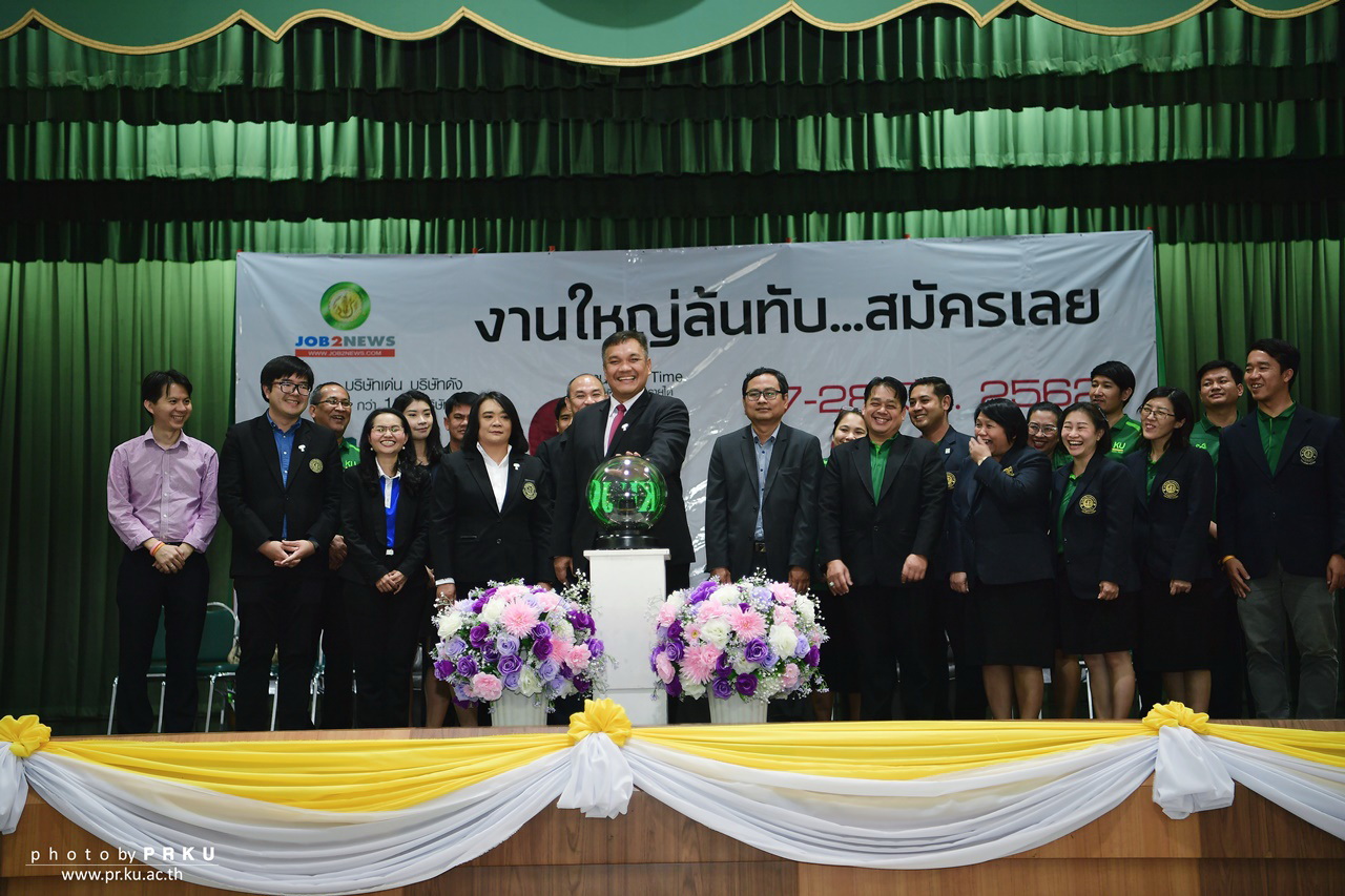 ดร.จงรัก วัชรินทร์รัตน์ รักษาการแทนอธิการบดีมหาวิทยาลัยเกษตรศาสตร์ เป็นประธานเปิดงานบัณฑิตมหาวิทยาลัยเกษตรศาสตร์พบผู้ประกอบการ ครั้งที่ 28 จัดโดยกองกิจการนิสิต มก.ร่วมกับหน่วยงานภาคเอกชน เพื่อเสริมสร้างโอกาสและประสบการณ์ในการเลือกสมัครงานให้แก่นิสิต ไม่ว่าจะเป็นการสมัครงานโดยตรงกับสถานประกอบการ หรือสืบค้นข้อมูลตำแหน่งงานว่างจากระบบส่งเสริมการมีงานทำ(jobsa.ku.ac.th) อีกทั้งยังสนับสนุนให้นิสิตมีรายได้ระหว่างเรียนตามนโยบายของมหาวิทยาลัยอีกด้วย โดยงานจัดขึ้นระหว่างวันที่ 27 -28 มีนาคม 2562 ณ อาคารจักรพันธ์เพ็ญศิริ มหาวิทยาลัยเกษตรศาสตร์ บางเขน