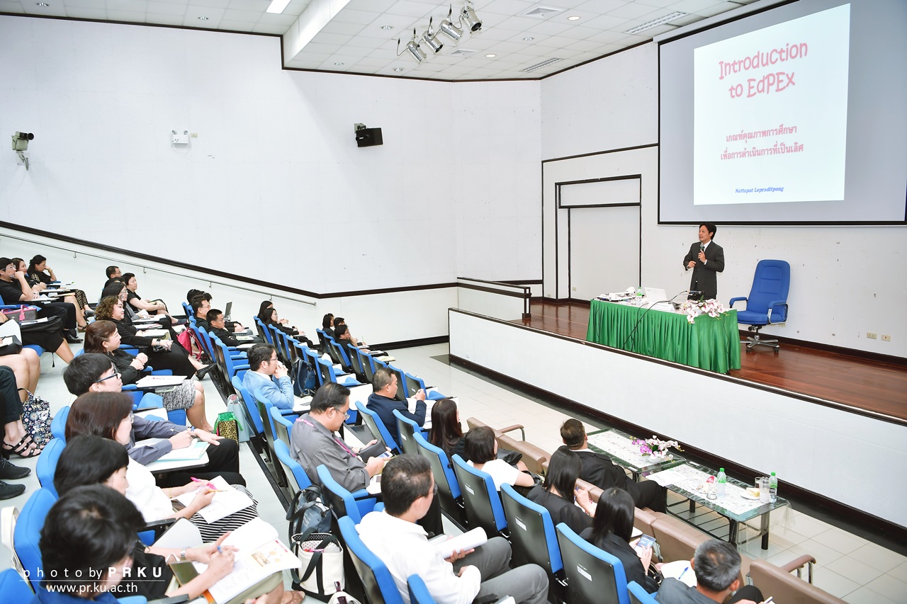 มหาวิทยาลัยเกษตรศาสตร์ โดยสำนักงานประกันคุณภาพ จัดโครงการอบรมชุดความรู้ EdPEx เรื่อง เกณฑ์ EdPEx สำหรับผู้บริหารมหาวิทยาลัยเกษตรศาสตร์ เพื่อให้ผู้เข้าอบรมมีความเข้าใจในองค์ประกอบทั้ง 7 หมวด ของเกณฑ์ EdPEx และสามารถใช้ขับเคลื่อนองค์กรสู่ความเป็นเลิศได้ เมื่อวันที่ 29 พฤษภาคม 2562 ณ ห้องประชุมวัฒนา สวรรยาธิปัติ อาคารวิทยบริการ สำนักส่งเสริมและฝึกอบรม มหาวิทยาลัยเกษตรศาสตร์ บางเขน