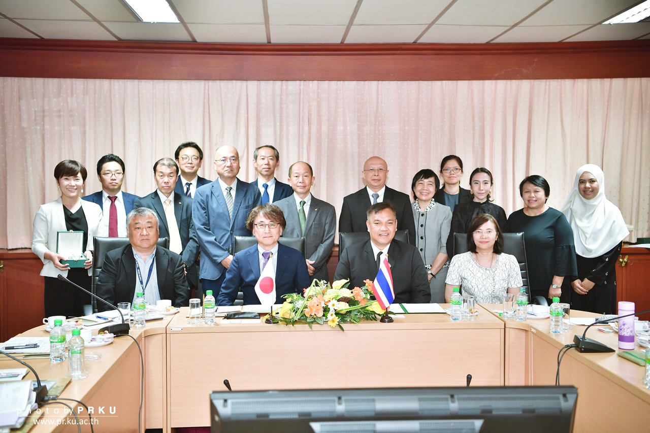 ดร.จงรัก วัชรินทร์รัตน์ รักษาการแทนอธิการบดีมหาวิทยาลัยเกษตรศาสตร์ ให้การต้อนรับคณะผู้บริหารจาก HR Japan และคณาจารย์จาก Mie University ประเทศญี่ปุ่น ซึ่งเดินทางมาเยือนมหาวิทยาลัยเกษตรศาสตร์ เพื่อหารือถึงแนวทางในการร่วมมือทางวิชาการระหว่างกัน เมื่อวันที่ 29 พฤษภาคม 2562 ณ ห้องประชุม 9 อาคารสารนิเทศ 50 ปี มหาวิทยาลัยเกษตรศาสตร์ บางเขน