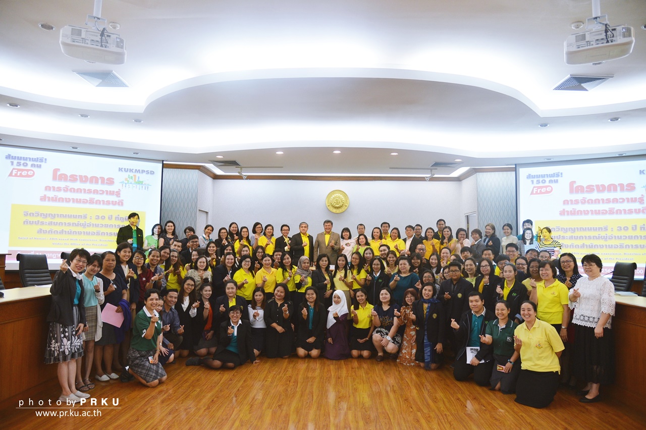 ดร.ดำรงค์ ศรีพระราม รองอธิการบดีฝ่ายบริหารกิจการภายใน มหาวิทยาลัยเกษตรศาสตร์ เป็นประธานเปิดกิจกรรมเสวนาแลกเปลี่ยนเรียนรู้ โครงการจัดการความรู้สำนักงานอธิการบดี เรื่อง จิตวิญญาณนนทรี : 30 ปีที่ภูมิใจ กับประสบการณ์ผู้อำนวยการกองสังกัดสำนักงานอธิการบดี เมื่อวันที่ 31 กรกฎาคม 2562 ณ ณ ห้องกำพล อดุลวิทย์ อาคารสารนิเทศ 50 ปี มหาวิทยาลัยเกษตรศาสตร์ บางเขน