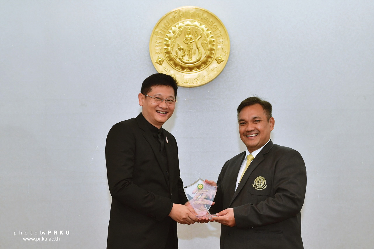 ดร.จงรัก วัชรินทร์รัตน์ รักษาการแทนอธิการบดีมหาวิทยาลัยเกษตรศาสตร์ มอบโล่ขอบคุณผู้บริหารที่ครบวาระการดำรงตำแหน่ง ประกอบด้วย 1. ดร.สมจิตต์ ปาละกาศ คณบดีคณะวิทยาศาสตร์ ศรีราชา 2.ผู้ช่วยศาสตราจารย์ ดร.สุภัทรชัย ชมพันธุ์ คณบดีคณะวิศวกรรมศาสตร์ศรีราชา 3.ดร.ศิริลักษณ์ ประสันแพงศรี คณบดีคณะศิลปะศาสตร์และวิทยาการจัดการ 4.อาจารย์พัสกร องอาจ คณบดีคณะสาธารณสุขศาสตร์ เมื่อวันที่ 8 ตุลาคม 2561 ณ ห้องประชุมกำพล อดุลวิทย์ อาคารสารนิเทศ 50 ปี มหาวิทยาลัยเกษตรศาสตร์ บางเขน