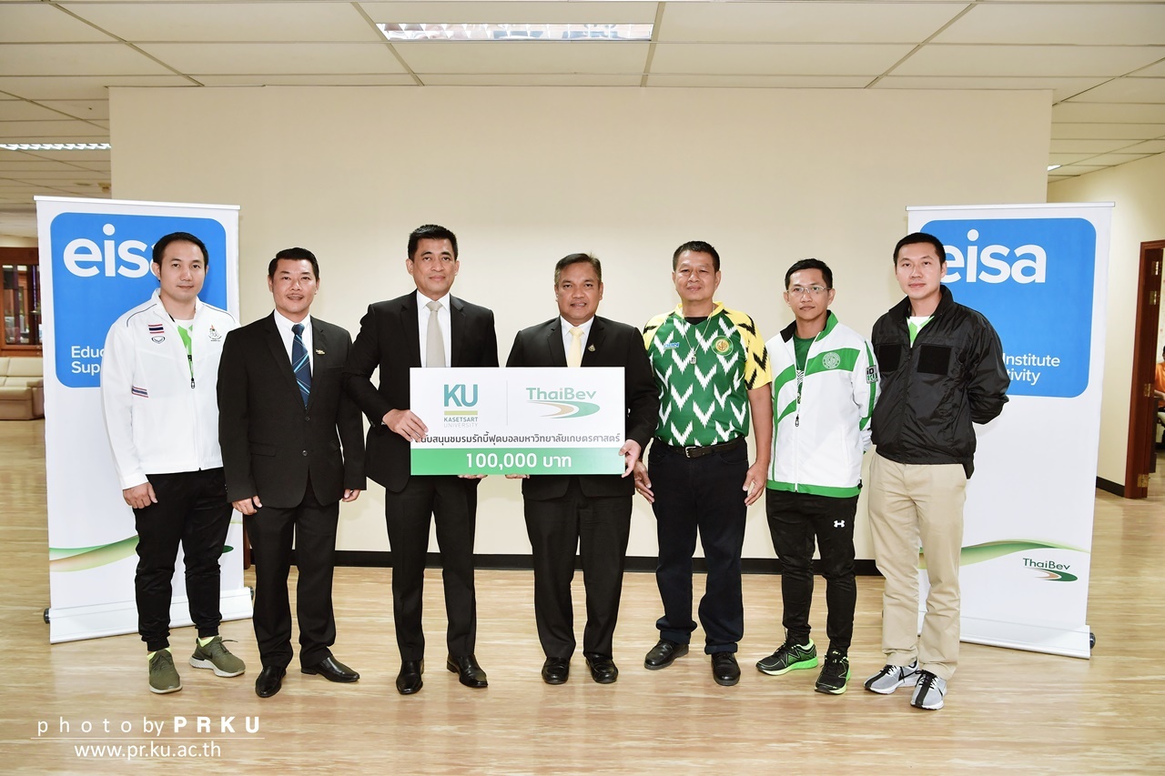 ดร.จงรัก วัชรินทร์รัตน์ รักษาการแทนอธิการบดีมหาวิทยาลัยเกษตรศาสตร์ รับมอบเงิน จำนวน 100,000 บาท จากคุณสุรพล อุทินทุ ผู้อำนวยการสำนักประสานงานภายนอก บริษัทไทยเบฟเวอเรจ จำกัด (มหาชน) เพื่อสนับสนุนชมรมรักบี้ฟุตบอลมหาวิทยาลัยเกษตรศาสตร์ ตามโครงการ Educational Instituted Support Activity (EISA) ของบริษัท เมื่อวันที่24 ตุลาคม 2562 ณ อาคารสารนิเทศ 50 ปี มหาวิทยาลัยเกษตรศาสตร์ บางเขน