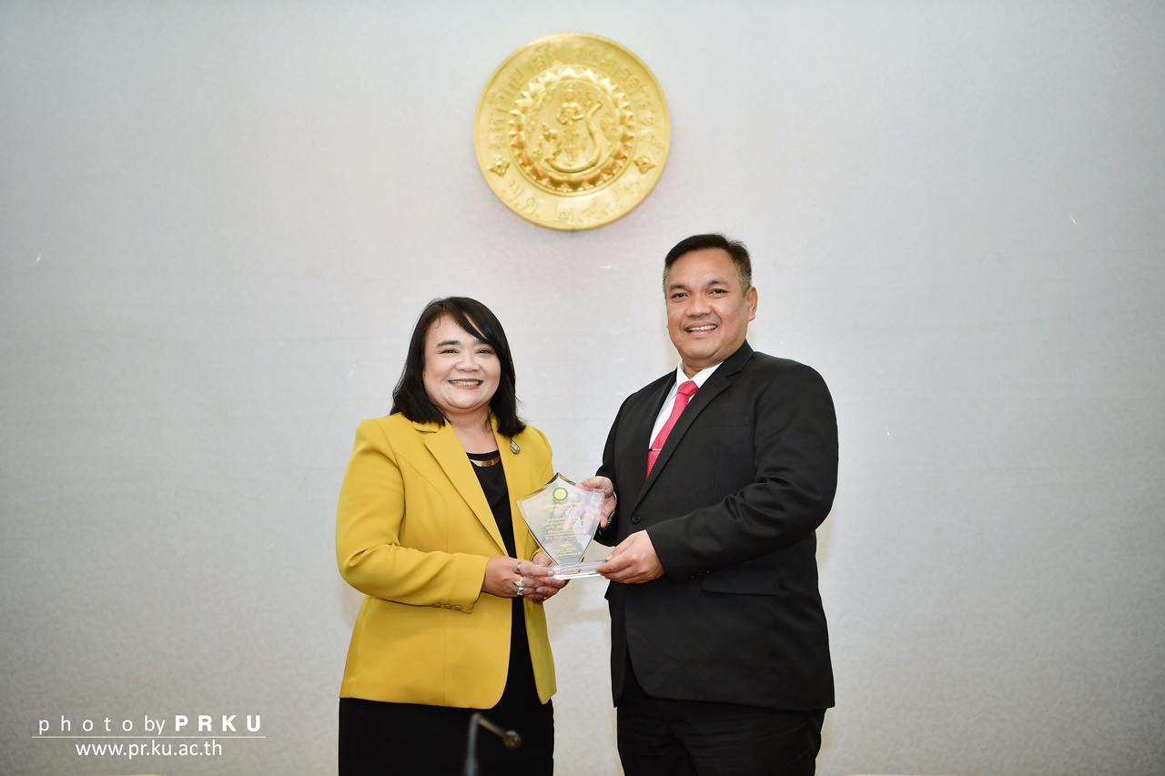 ดร.จงรัก วัชรินทร์รัตน์ รักษาการแทนอธิการบดีมหาวิทยาลัยเกษตรศาสตร์ มอบโล่แสดงความขอบคุณ แด่ ผศ.นาวาอากาศโทหญิง ดร.งามลมัย ผิวเหลือง ในโอกาสที่พ้นจากวาระการดำรงตำแหน่งรองอธิการบดีฝ่ายกิจการนิสิต มก. เมื่อวันที่ 11 พฤศจิกายน 2562 ณ ห้องกำพล อดุลวิทย์ อาคารสารนิเทศ 50 ปี มหาวิทยาลัยเกษตรศาสตร์ บางเขน