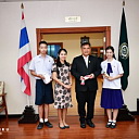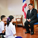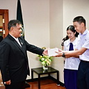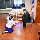 ตัวแทนนักเรียนจากโรงเรียนสาธิตฯ กราบรักษาการอธิการบดี เนื่องในวันไหว้ครู