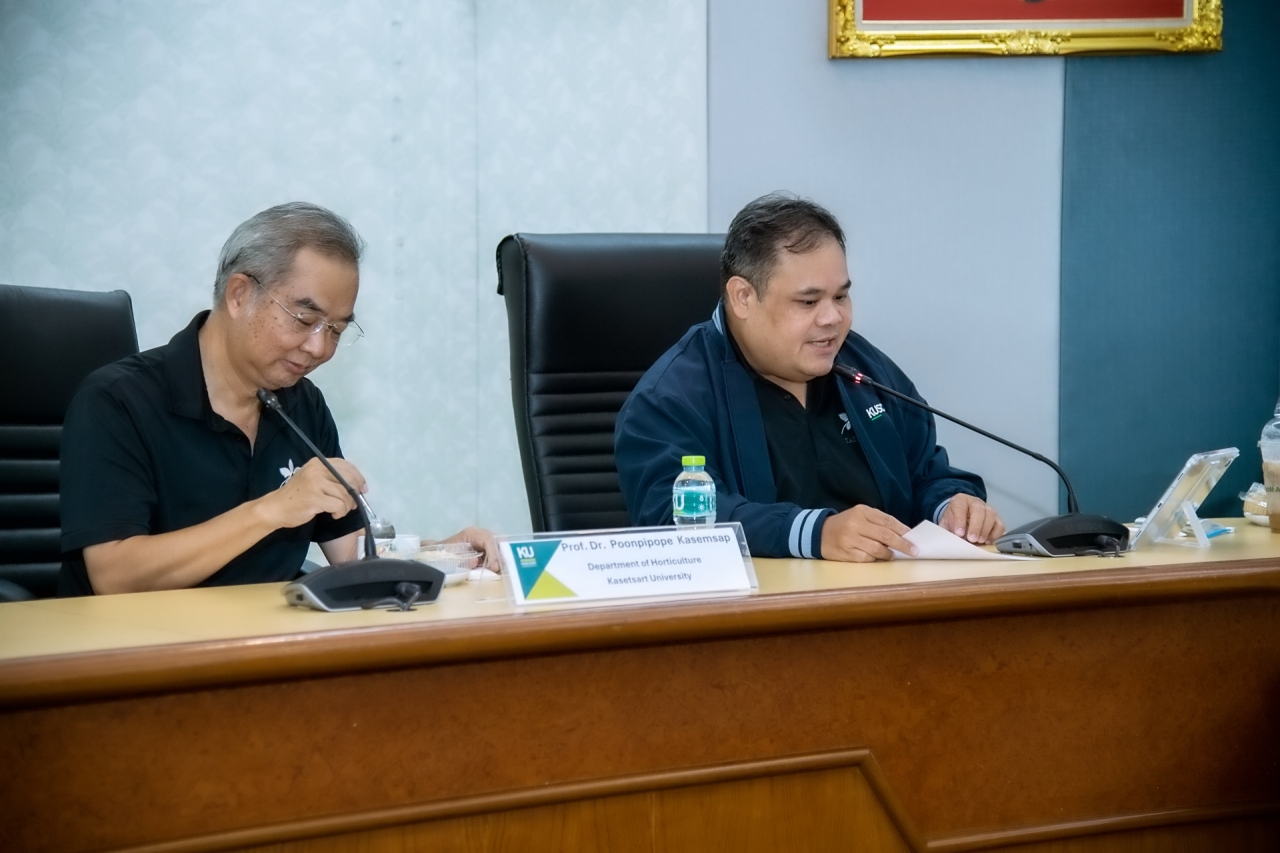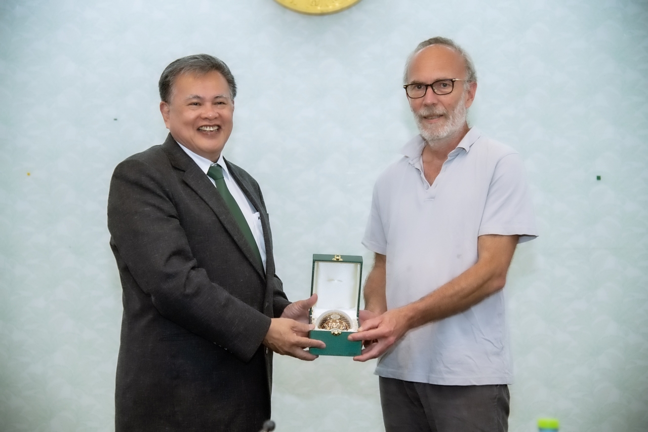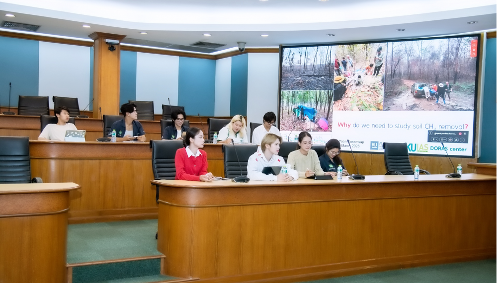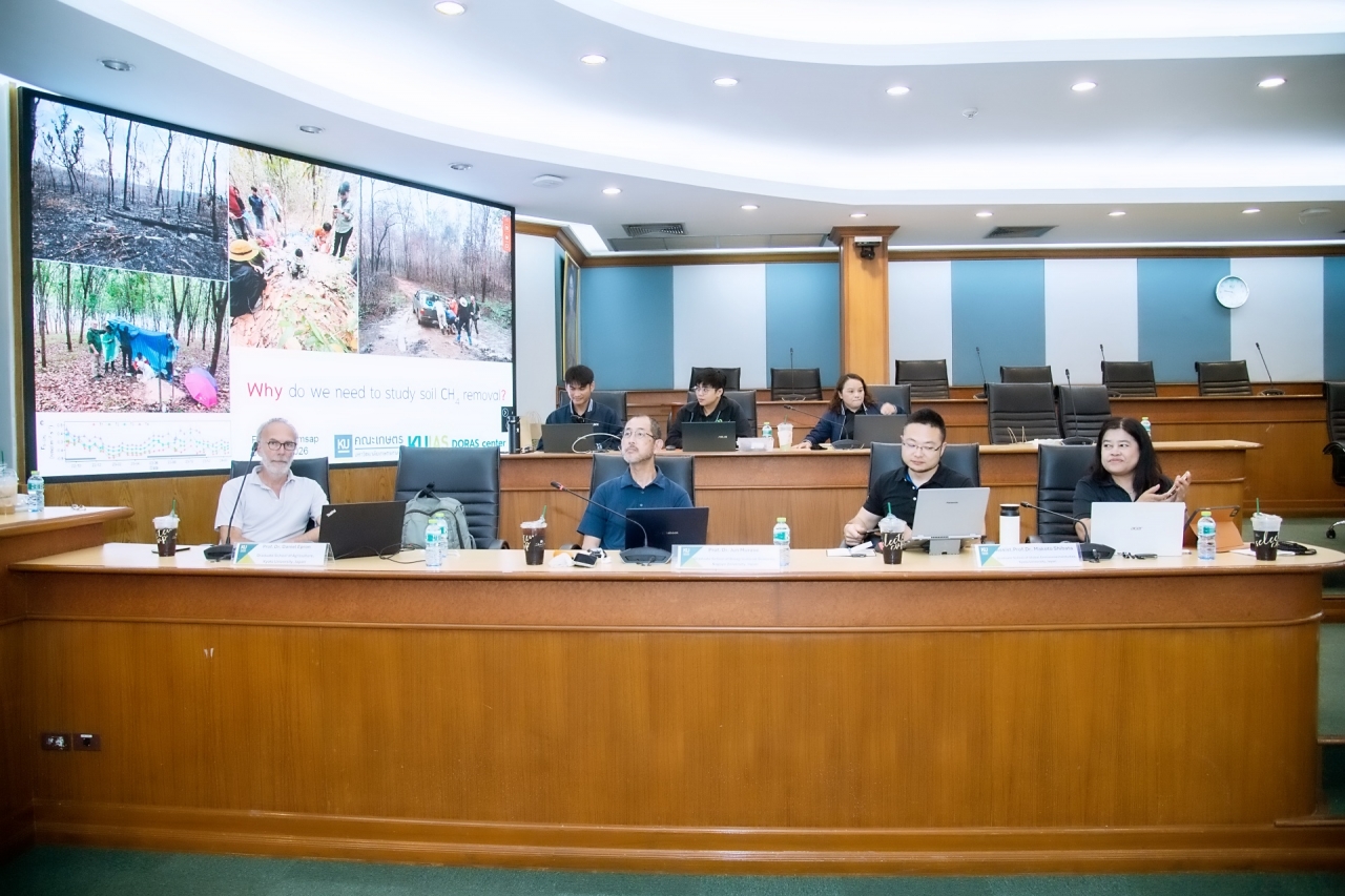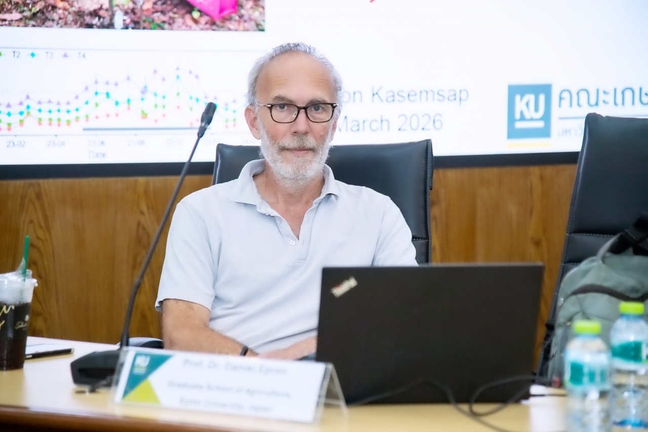ดร.ดำรงค์ ศรีพระราม รักษาการแทนอธิการบดีมหาวิทยาลัยเกษตรศาสตร์ เป็นประธานเปิดการบรรยายพิเศษ How land use changes affect the strength of the soil methane sink: comparing forests and tree crops in northeastern Thailand เมื่อวันที่ 6 มีนาคม 2569 ณ ห้องกำพล อดุลวิทย์ อาคารสารนิเทศ 50 ปี มหาวิทยาลัยเกษตรศาสตร์