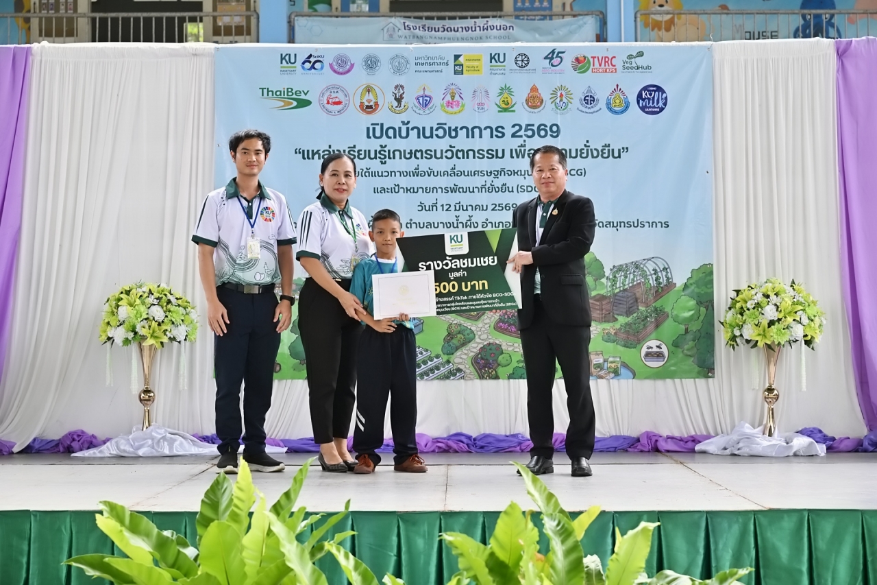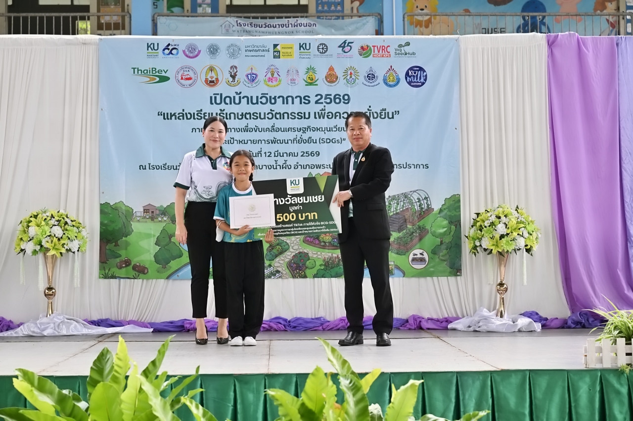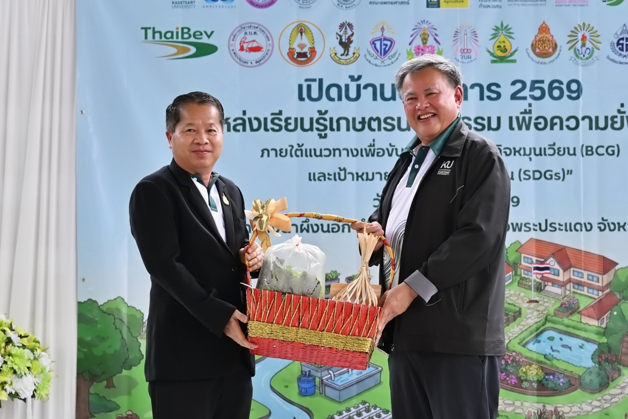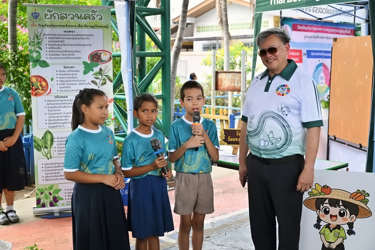 ดร.ดำรงค์ ศรีพระราม รักษาการแทนอธิการบดี มหาวิทยาลัยเกษตรศาสตร์ เป็นประธานเปิดบ้านวิชาการ 2569 แหล่งเรียนรู้เกษตรนวัตกรรมเพื่อความยั่งยืน โครงการบูรณาการกลุ่มโรงเรียนและชุมชนคุ้งบางกะเจ้าเพื่อขับเคลื่อนเศรษฐกิจหมุนเวียน (BCG) และเป้าหมายการพัฒนาที่ยั่งยืน (SDGs) เมื่อวันที่ 12 มีนาคม 2569 ณ โรงเรียนวัดบางน้ำผึ้งบอก ต.บางน้ำผึ้ง อำเภอพระประแดง จังหวัดสมุทรปราการ เพื่อนำเสนอผลงานการดำเนินงานต่อเนื่องของโครงการการบูรณาการความรู้ระหว่างมหาวิทยาลัย โรงเรียน และชุมชนสร้างต้นแบบการเรียนรู้ที่เป็นรูปธรรมและยั่งยืน