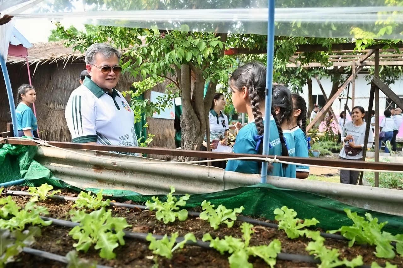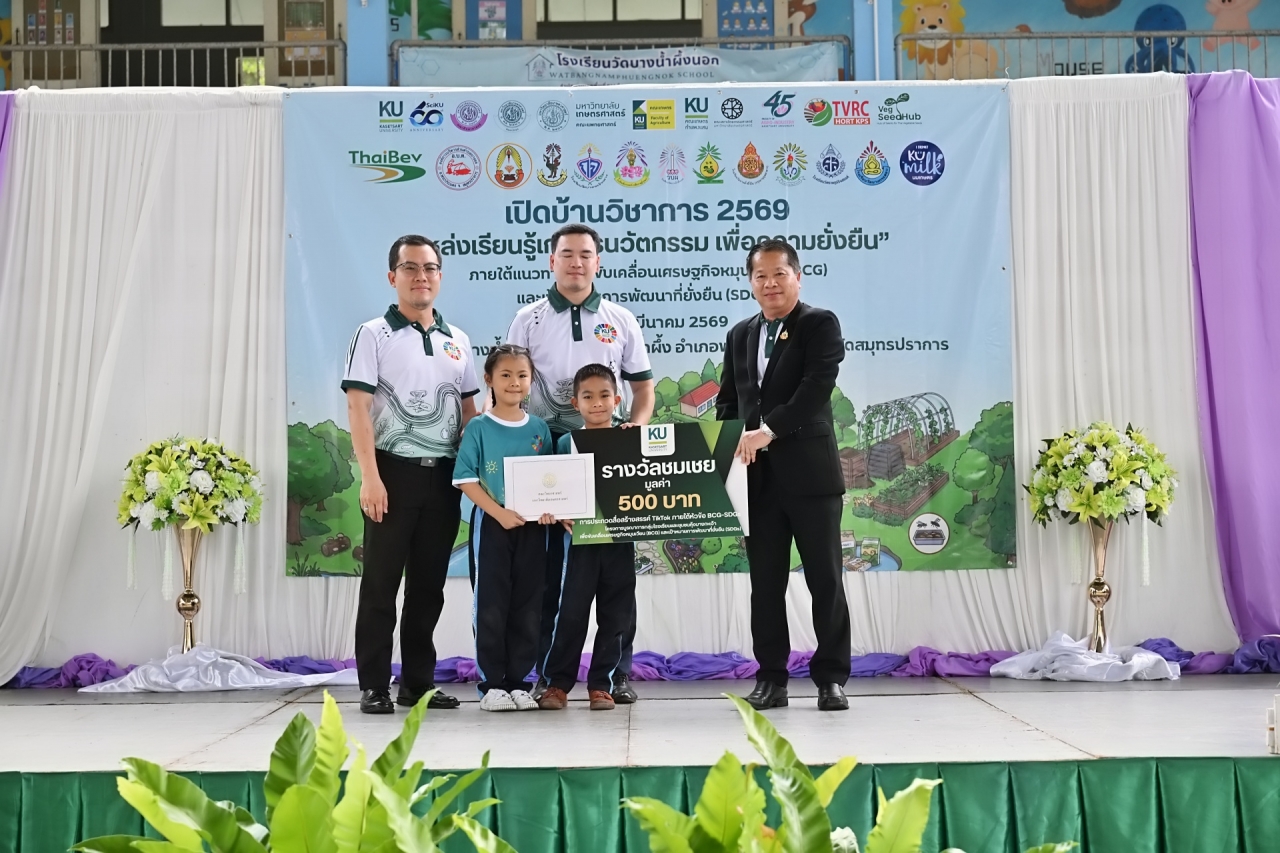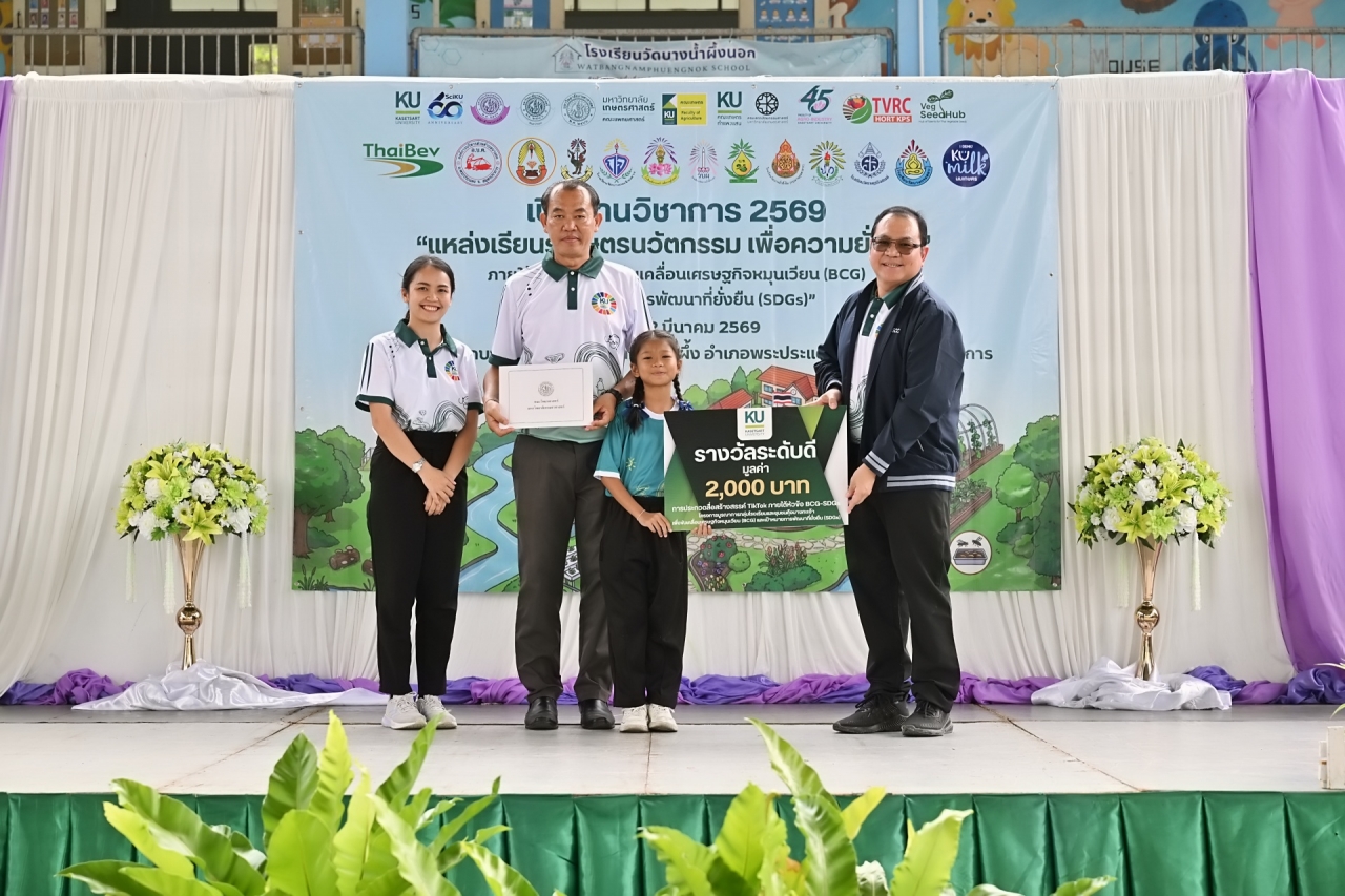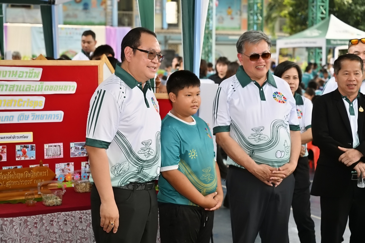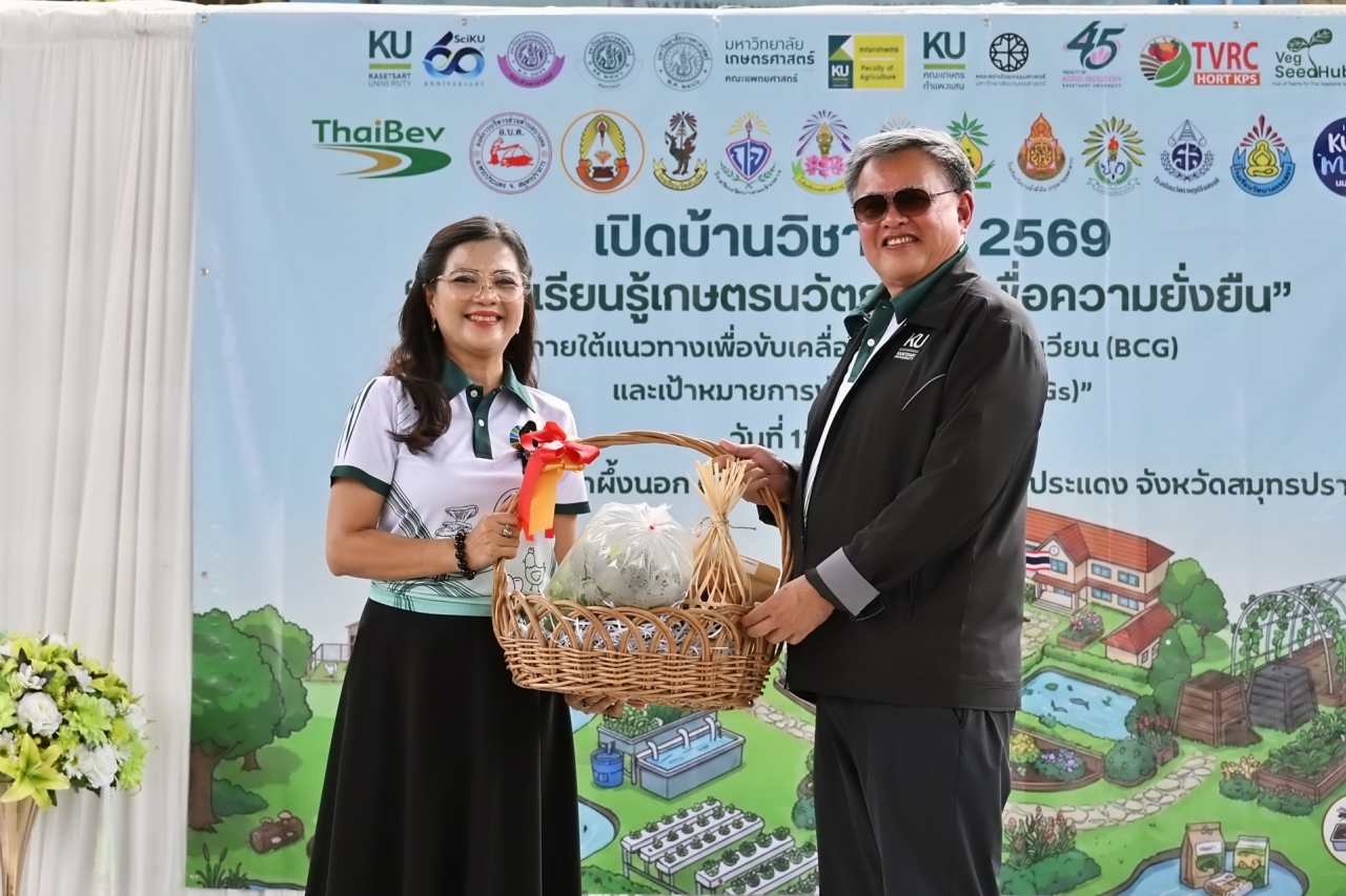 ดร.ดำรงค์ ศรีพระราม รักษาการแทนอธิการบดี มหาวิทยาลัยเกษตรศาสตร์ เป็นประธานเปิดบ้านวิชาการ 2569 แหล่งเรียนรู้เกษตรนวัตกรรมเพื่อความยั่งยืน โครงการบูรณาการกลุ่มโรงเรียนและชุมชนคุ้งบางกะเจ้าเพื่อขับเคลื่อนเศรษฐกิจหมุนเวียน (BCG) และเป้าหมายการพัฒนาที่ยั่งยืน (SDGs) เมื่อวันที่ 12 มีนาคม 2569 ณ โรงเรียนวัดบางน้ำผึ้งบอก ต.บางน้ำผึ้ง อำเภอพระประแดง จังหวัดสมุทรปราการ เพื่อนำเสนอผลงานการดำเนินงานต่อเนื่องของโครงการการบูรณาการความรู้ระหว่างมหาวิทยาลัย โรงเรียน และชุมชนสร้างต้นแบบการเรียนรู้ที่เป็นรูปธรรมและยั่งยืน