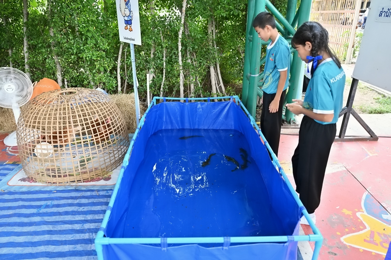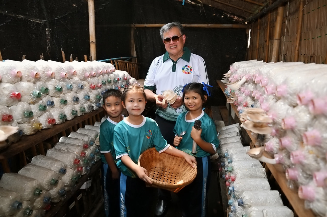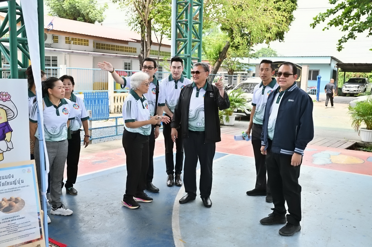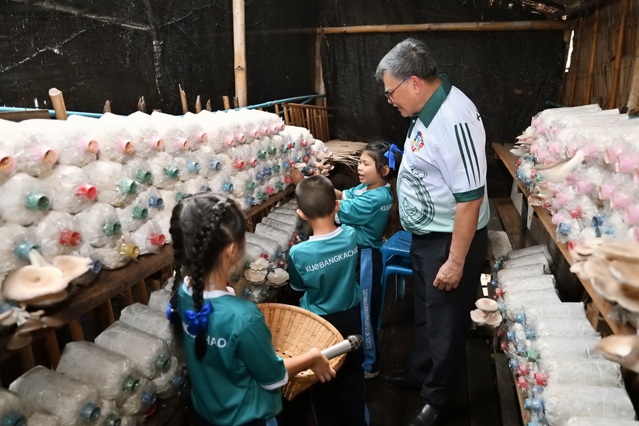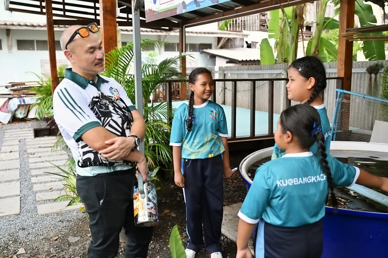 โครงการบูรณาการกลุ่มโรงเรียนและชุมชนคุ้งบางกะเจ้าเพื่อขับเคลื่อนเศรษฐกิจหมุนเวียน (BCG) และเป้าหมายการพัฒนาที่ยั่งยืน (SDGs) เป็นโครงการที่เกิดจากการผลักดันและการสนับสนุนอย่างต่อเนื่องโดย ดร.ดำรงค์ ศรีพระราม รักษาการแทนอธิการบดี พร้อมด้วย ผศ.ดร.กฤษณ์ วันอินทร์ รองอธิการบดีฝ่ายนวัตกรรมและพันธกิจเพื่อสังคม เพื่อส่งเสริมการเรียนรู้เชิงปฏิบัติให้กับนักเรียนผ่านกิจกรรมด้านการเกษตรที่เชื่อมโยงอย่างเป็นระบบ เช่น การเลี้ยงแมลง BSF การเลี้ยงไก่ไข่ การปลูกผักสวนครัว และการแปรรูปผลิตภัณฑ์ โดยมีอาจารย์และนักวิจัยจากคณะวิทยาศาสตร์ คณะเกษตร คณะประมง คณะศึกษาศาสตร์ และคณะสถาปัตยกรรมศาสตร์ของ มก. ร่วมเป็นพี่เลี้ยงในการออกแบบการเรียนรู้และพัฒนากระบวนการผลิต สร้างต้นแบบการเรียนรู้ที่เข้มแข็งในชุมชนจากการบูรณาการความรู้ระหว่างมหาวิทยาลัย โรงเรียน และชุมชน ร่วมกันขับเคลื่อนประเทศไทยสู่อนาคตที่เป็นมิตรต่อสิ่งแวดล้อมและสังคมอย่างแท้จริง