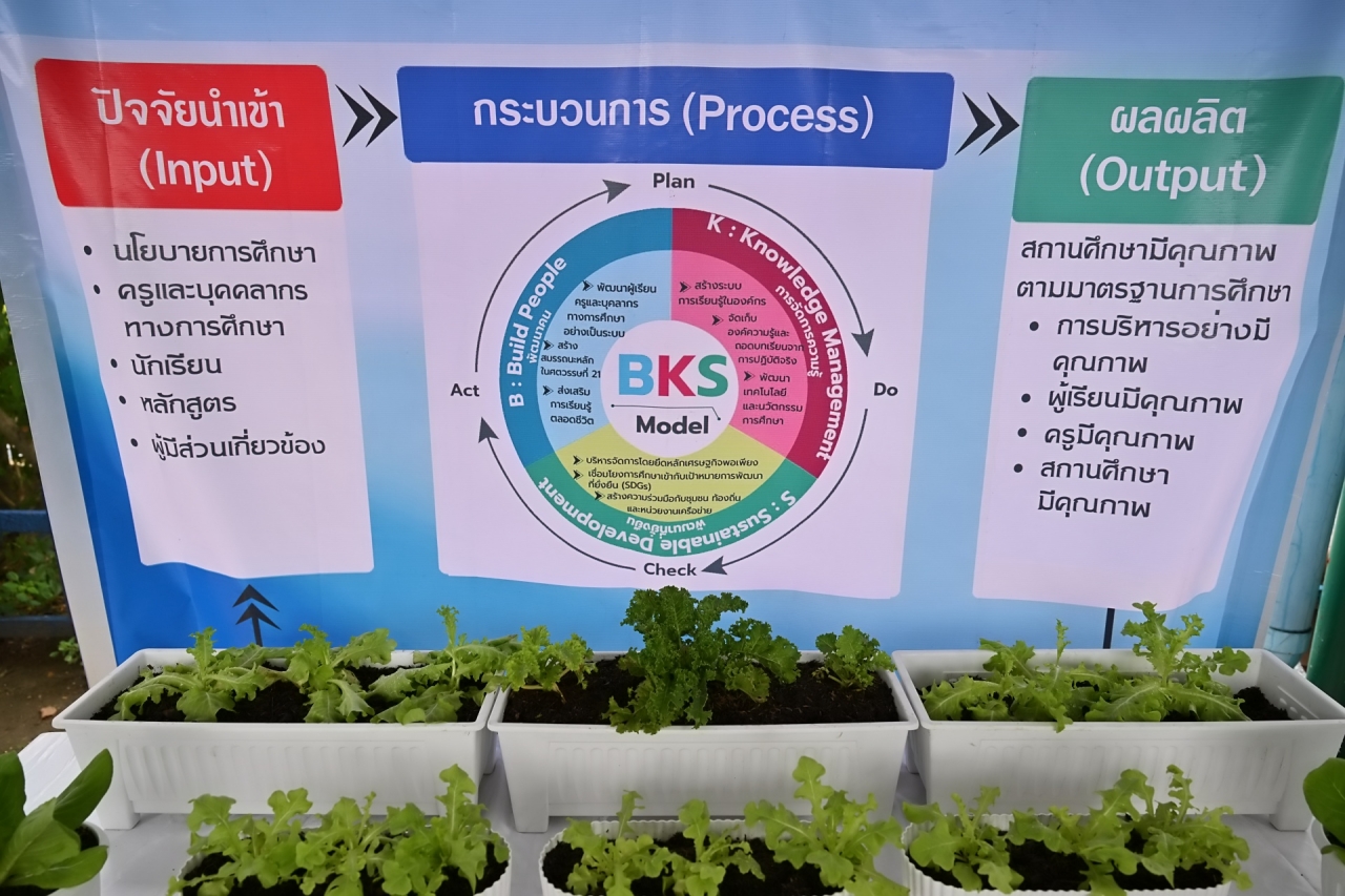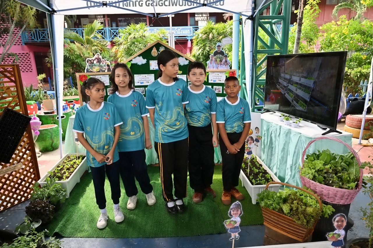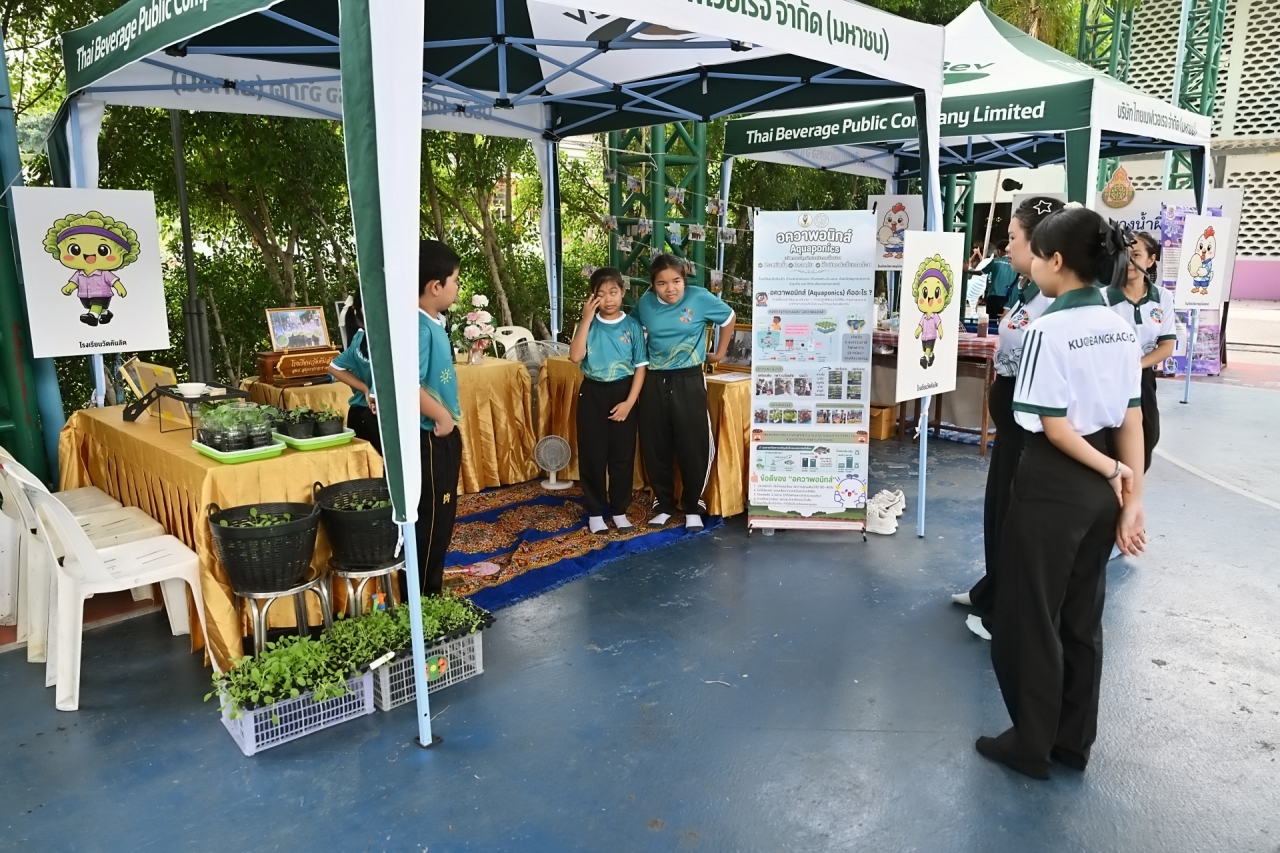 ทั้งนี้ ดร.ดำรงค์ ศรีพระราม นำคณะผู้บริหารมหาวิทยาลัยเกษตรศาสตร์และแขกผู้มีเกียรติเยี่ยมชมการนำเสนอผลงานของแต่ละโรงเรียน เช่น กิจกรรมปลูกผักสวนครัวแบบชั้นแนวตั้ง โรงเรียนวัดบางขมิ้น การปลูกผักไฮโดรพอนิกส์ร่วมกับการเลี้ยงปลา : อควาพอนิกส์ โรงเรียนวัดคันลัด การปลูกผักเลื้อยแบบอุโมงค์ โรงเรียนวัดบางน้ำผึ้งใน กิจกรรมเลี้ยงแมลง BSF ครบวงจร กิจกรรมปุ๋ยหมัก เลี้ยงไก่ไข่ เลี้ยงปลาดุก ปลูกผักสวนครัวแบบยกพื้น และเพาะเห็ดนางฟ้า โรงเรียนวัดบางน้ำผึ้งนอก เป็นต้น