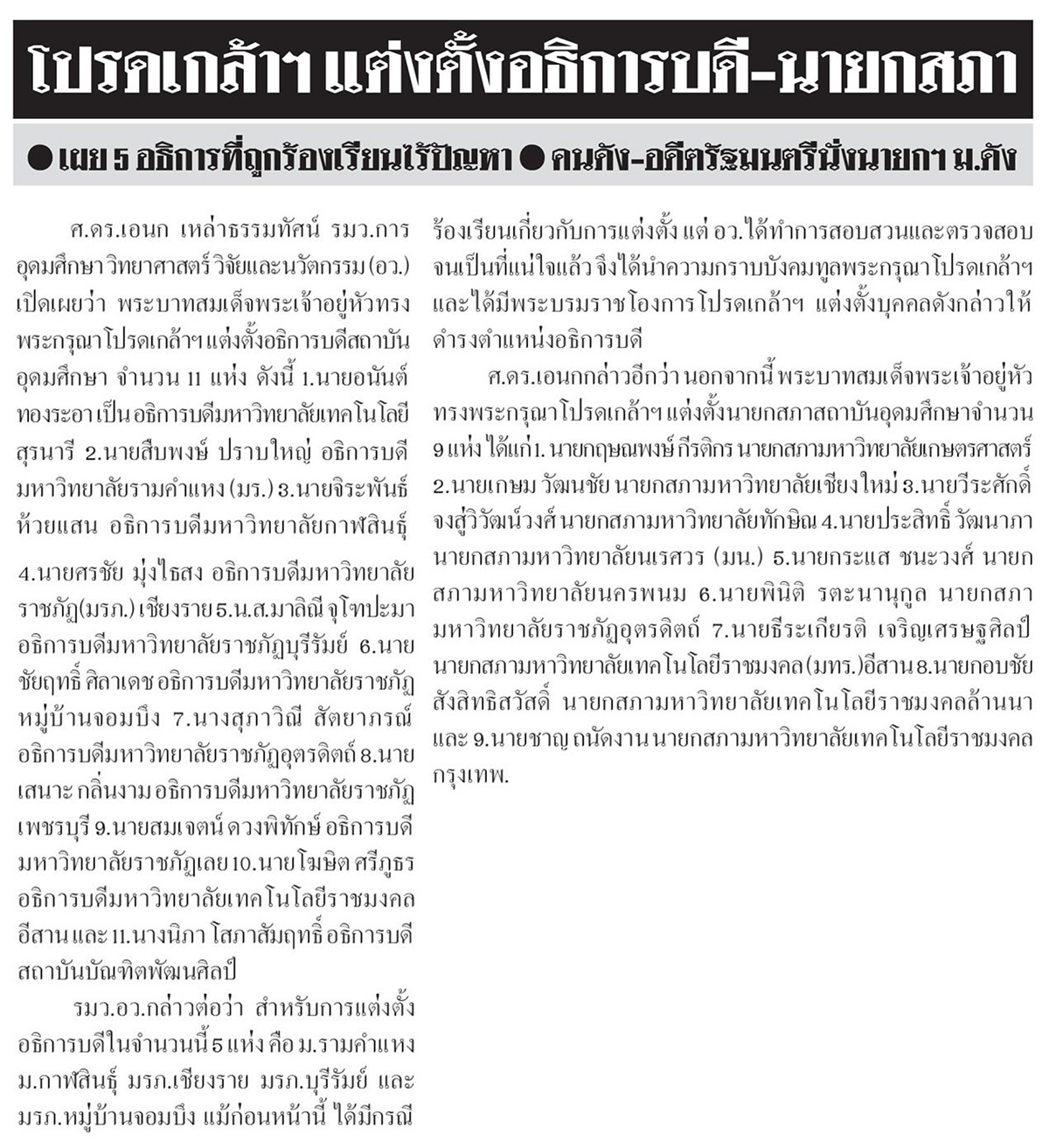 โปรดเกล้าฯ 'ดร.จงรัก' ดํารงตําแหน่งอธิการบดี